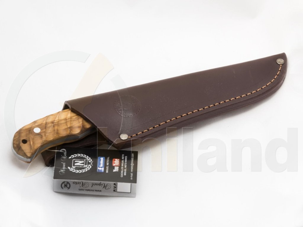 Cuțitul Miguel Nieto este potrivit pentru utilizare în aer liber, vânătoare și pentru utilizare zilnică. Mâner din lemn de măslin, teacă din piele. Lama este fabricată din oțel inoxidabil din Spania AN-58, duritate 58-60HRC. Acest oțel durabil și rezistent a fost dezvoltat direct de Miguel Nieto.