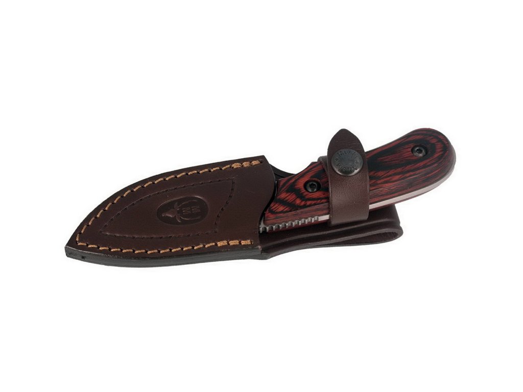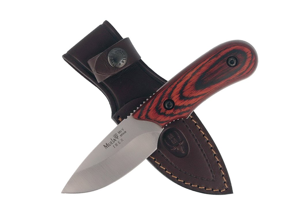 Cuțitul de vânătoare mic Muela Ibex-8R este fabricat dintr-o singură bucată de oțel inoxidabil X50CrMoV15, ceea ce îl face foarte durabil și rezistent. Lama este lungă de 7,5 cm, are un tăiș tip hollow grind și un finisaj mat. Dimensiunea și forma lamei fac ca acest cuțit să fie foarte bun pentru jupuirea vânatului. Datorită dimensiunii sale, este, de asemenea, potrivit pentru a fi purtat în jurul gâtului. Mânerul este fabricat din lemn pakka, un material foarte rezistent, și este fixat de corpul cuțitului cu două șuruburi. Cuțitul este livrat cu o teacă din piele.