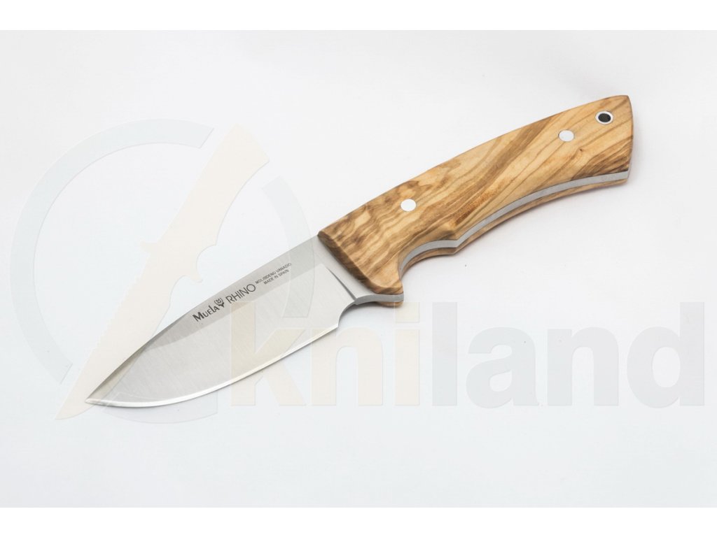 Cuțitul pentru vânătoare RHINO 10.OL este fabricat dintr-o singură bucată de oțel molibden-vanadiu, ceea ce îl face foarte durabil și va rezista chiar și în condiții dificile. Mânerul este fabricat din lemn de măslin cu un model frumos și este atașat de corpul cuțitului cu două nituri. La capătul mânerului există o gaură cu un nit tubular pentru introducerea unui șnur. Cuțitul este livrat cu o teacă din piele.