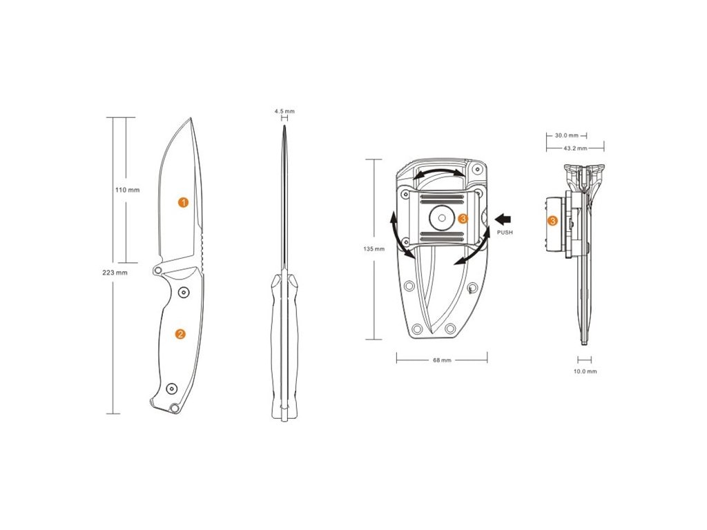 Ruike Jager este un cuțit robust, cu lamă fixă și o construcție full tang. Datorită acestui fapt, este foarte util pentru lucrări grele în natură, dar și drept cuțit de vânătoare. Lama are o lungime de 11 cm, este fabricată din oțel inoxidabil Sandvik 14C28N, care a fost supusă unui tratament criogenic. Mânerul din G10 este ergonomic. La capătul mânerului se află o gaură pentru șnur (lanyard hole). Teaca neagră, din plastic ABS este prevăzută cu o clemă rotativă, datorită căreia cuțitul poate fi purtat orizontal, vertical sau sub orice unghi.