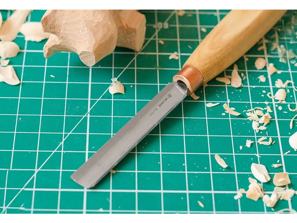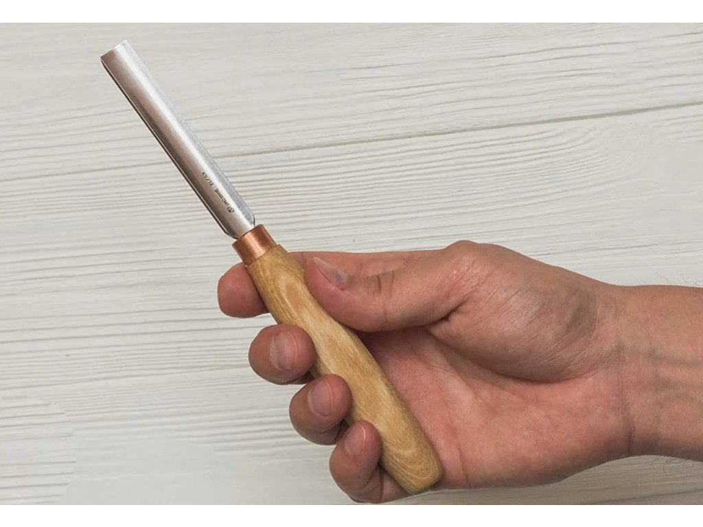 Daltă compactă dreaptă - concavă, cu lățimea lamei de 12 mm și profilul lamei de 5. Mâner din lemn de frasin, impregnat cu ulei.