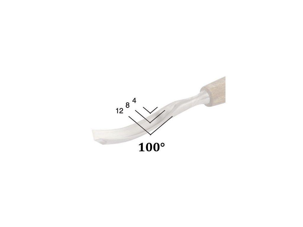 Daltă pentru sculptură în lemn dreaptă - în V, cu profil al lamei de 100°. 12 mm lățime.