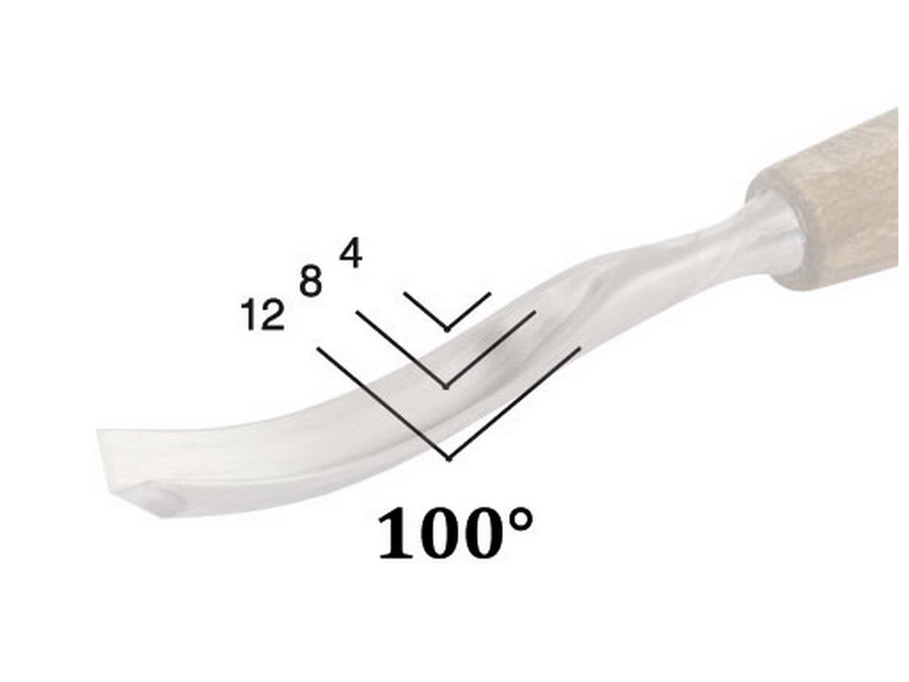 Daltă pentru sculptură în lemn în formă de lingură - în V, cu profil al lamei de 100°. 8 mm lățime.