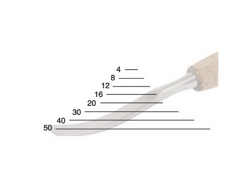 Daltă pentru sculptură în lemn în formă de lingură cu profil lamei 1. 4 mm lățime.