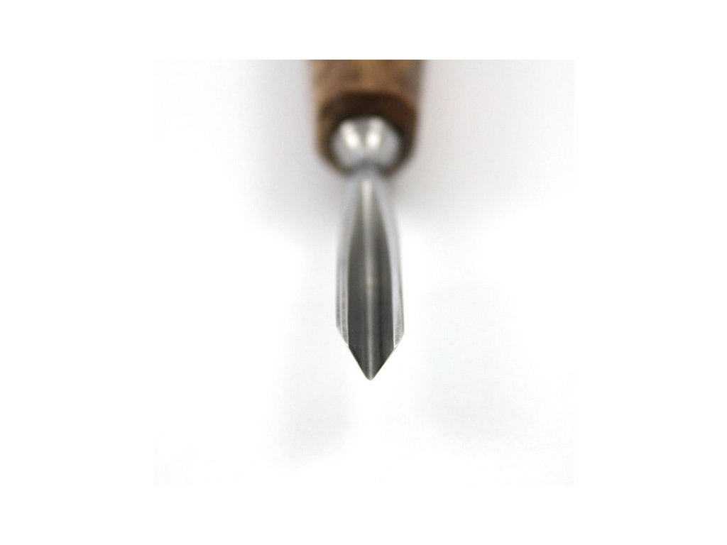 Daltă dreaptă - în V, scurtă, pentru sculpturi fine. Lama are o lățime de 4 mm.