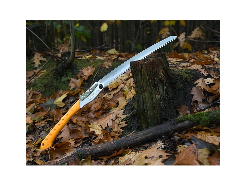 Ferăstrău profesional pliabil realizat și adaptat pentru utilizarea în aer liber, tăierea lemnului și a oaselor. Potrivit în special pentru silvicultori, pentru îngrijirea și întreținerea arborilor. Lama curbată permite o tăiere confortabilă și eficientă deasupra nivelului umerilor. Finisajul cromat asigură rezistența la coroziune. Lungimea lamei este de 360 mm, iar densitatea dinților este de 6,5 dinți la 30 mm. Lama este fabricată din oțel carbon SK4. Surprinde prin performanțele sale superioare de tăiere, datorită metodei patentate de ascuțire Mirai-Me a dinților, care au până la 4 unghiuri de tăiere. Mânerul este fabricat din plastic de culoare portocalie, reduce vibrațiile și asigură o prindere fermă chiar și atunci când folosiți mănuși.