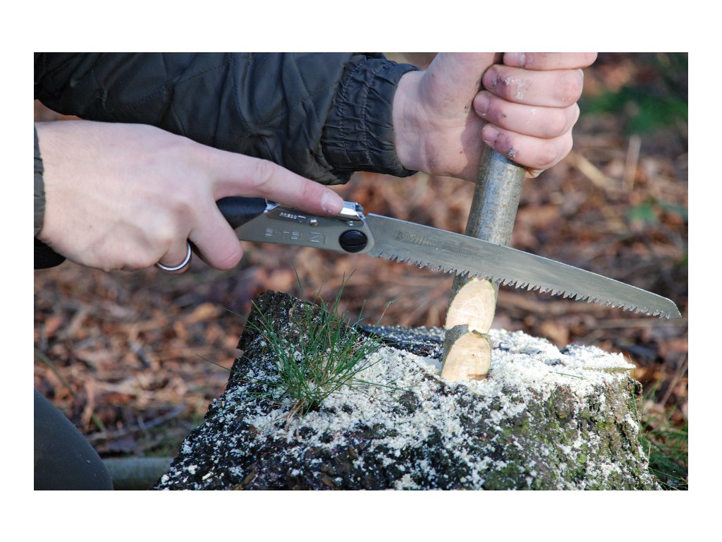 Fierăstrău profesional manual, pentru lemn, adaptat pentru utilizarea în aer liber și bushcraft. Lamă de lungime 210 mm, greutate redusă de 195 g și densitate a dinților de 7,5 dinți pe o lamă de 30 mm.