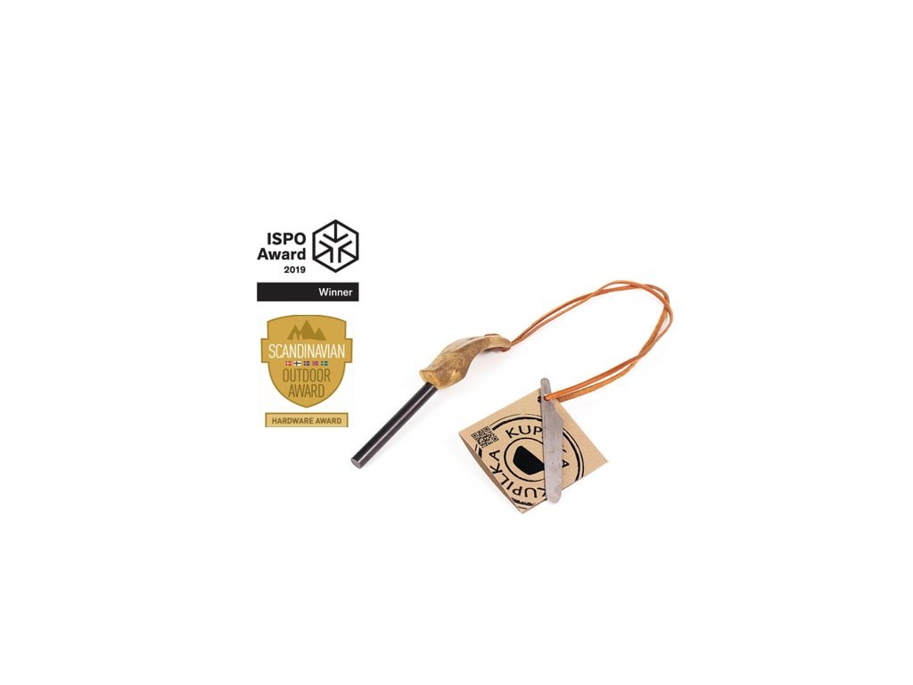 Kitul pentru aprinderea focului KUPILKA FireSteel 8 produce scântei cu o temperatură de până la 3000 °C, facilitează aprinderea focului chiar și pe vreme umedă. Vine împreună cu o lamă din metal și cu un șnur din piele de ren. Mânerul din material compozit Kareline poate fi utilizat și cu mănuși. Fabricat în Finlanda, conform standardelor europene. A fost proiectat în colaborare cu compania Karu Survival - un lider în domeniul instruirii pentru supraviețuirea în natură din Finlanda. Dimensiunile tijei: 8 mm x 65 mm