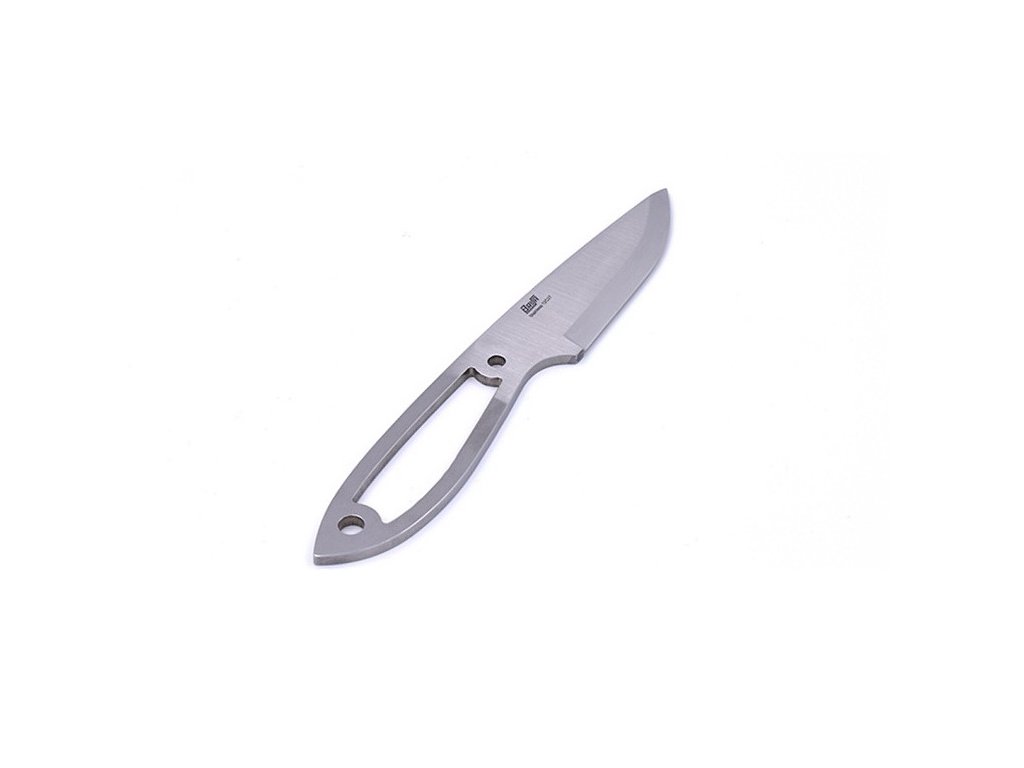 Lamă pentru confecționarea cuțitelor, grosime 3,5 mm, din oțel inoxidabil Sandvik 12C27. Lama are o construcție full tang. Lungime totală 17,3 cm, lungimea lamei în sine 8 cm. Lățimea lamei 2,5 cm, diametrele găurilor 1 x 4,6 mm și 1 x 6,5 mm. Lama are un tăiș de tip scandi grind. Lama este tratată termic, întărită și ascuțită - gata de utilizare.