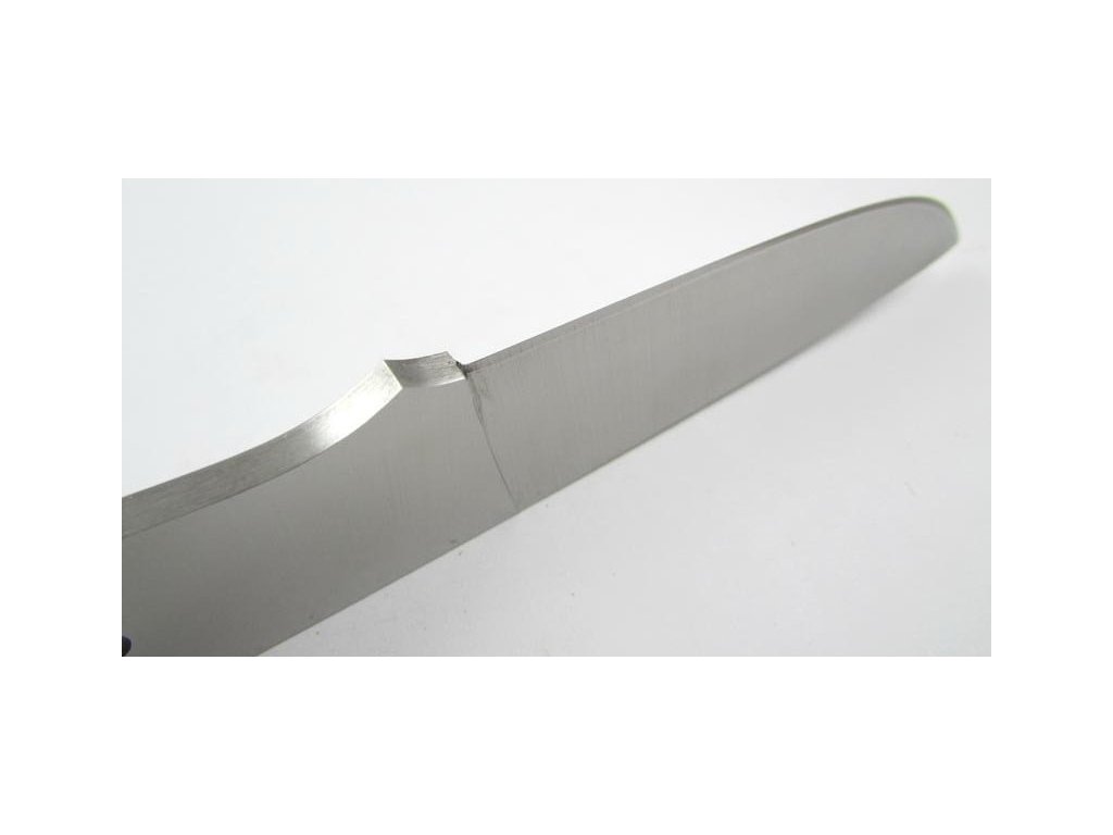 Lamă de 3,6 mm grosime din oțel inoxidabil Elmax. Lama are construcție full tang și tăiș flat grind. Lungimea totală este de 21 cm, lungimea lamei în sine este de 9,5 cm. Lama este tratată termic, întărită și ascuțită - gata de utilizare.