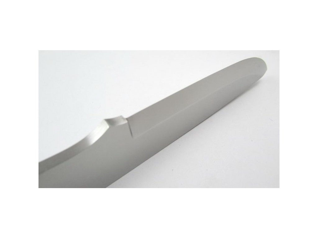 Lamă de 3,6 mm grosime din oțel inoxidabil Elmax. Lama are construcție full tang și tăiș scandi grind. Lungimea totală este de 21 cm, lungimea lamei în sine este de 9,5 cm. Lama este tratată termic, întărită și ascuțită - gata de utilizare.