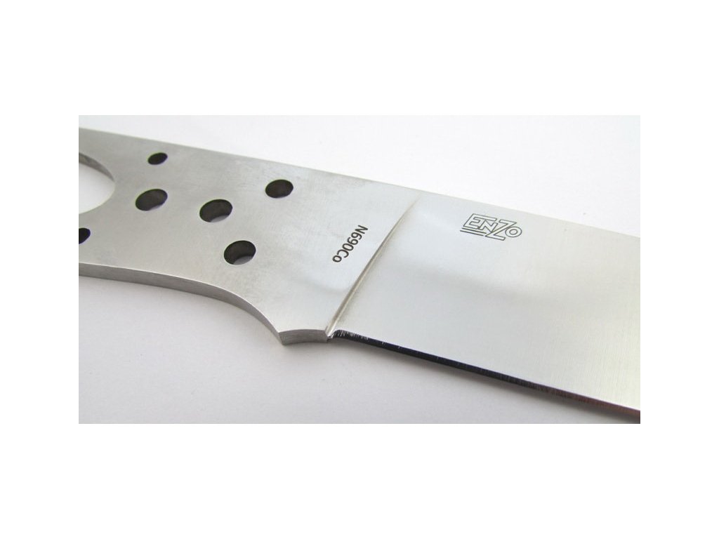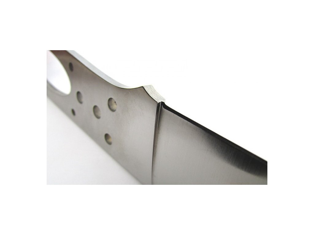 Lamă de 3,6 mm grosime din oțel inoxidabil N690. Lama are construcție full tang și tăiș flat grind. Lungimea totală este de 21 cm, lungimea lamei în sine este de 9,5 cm. Lama este tratată termic, întărită și ascuțită - gata de utilizare.