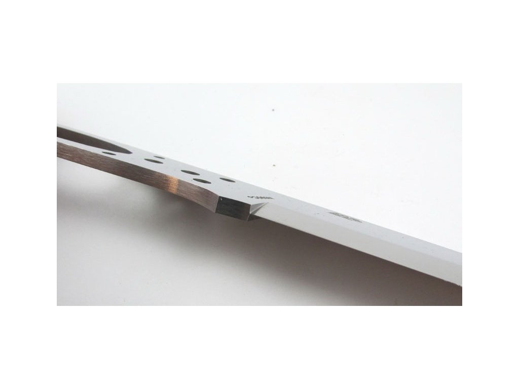 Lamă de 3,6 mm grosime din oțel inoxidabil N690. Lama are construcție full tang și tăiș flat grind. Lungimea totală este de 21 cm, lungimea lamei în sine este de 9,5 cm. Lama este tratată termic, întărită și ascuțită - gata de utilizare.