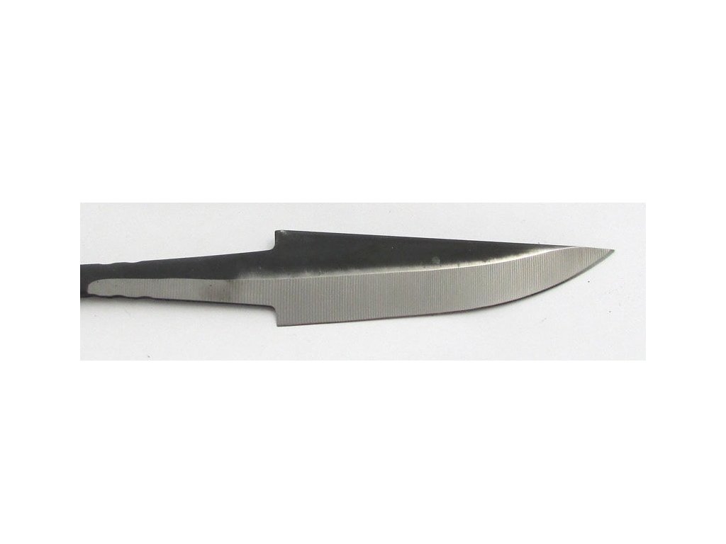 Grosimea lamei 3 mm, este fabricată din oțel carbon 80CrV2. Lama are un design stick tang. Este tratată termic, întărită și ascuțită - gata de utilizare. Lungime totală 20,5 cm, lungimea lamei 8 cm.