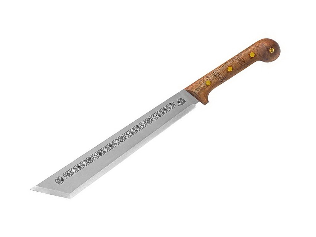 Macetă fabricată din oțel 1075 cu conținut ridicat de carbon, lungime totală 48,3 cm, lungime lamă 31 cm, mâner din nuc.