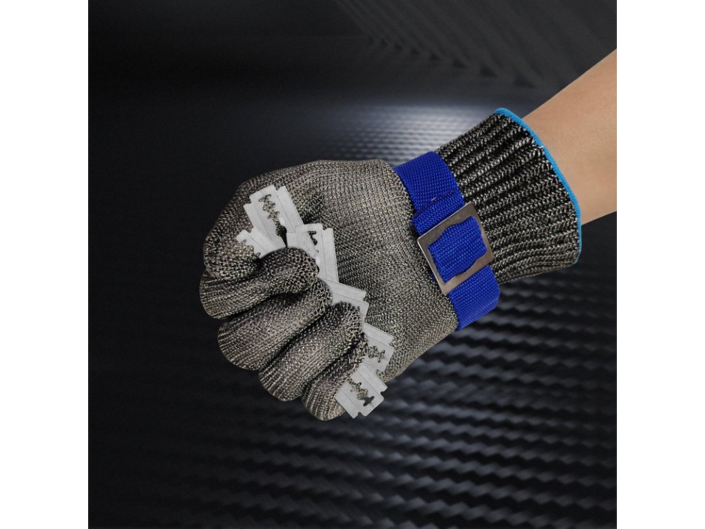 Mănușă rezistentă la tăiere, fabricată din sârmă de oțel inoxidabil extrem de durabilă, cu cel mai ridicat standard de rezistență la tăiere ANSI A9. Mănușa este ușoară, flexibilă. Pachetul conține pe lângă mănușa metalică și o mănușă albă din pânză. Mărimi S (mărimea 7), M (8), L (9) și XL (10).