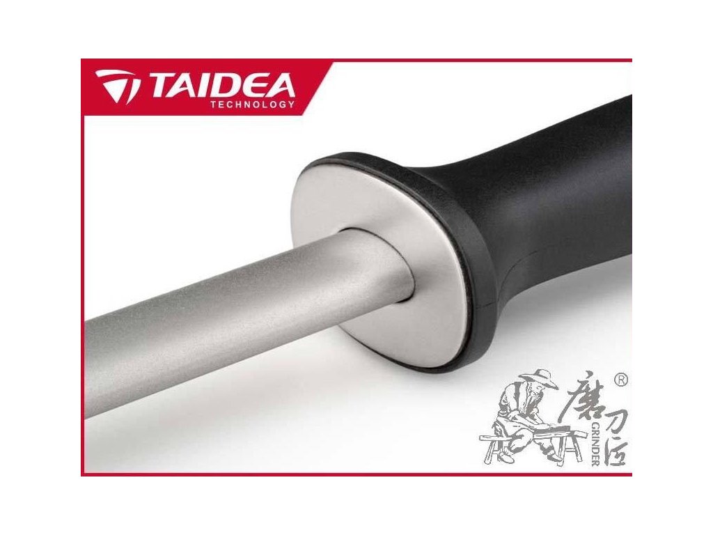 Masat diamantat pentru ascuțit Taidea, formă ovală Suprafața diamantată îl face potrivit și pentru cuțite fabricate din oțeluri foarte dure. Mâner din plastic. Lungimea părții de ascuțit 25,5 cm. Granulație 600.
