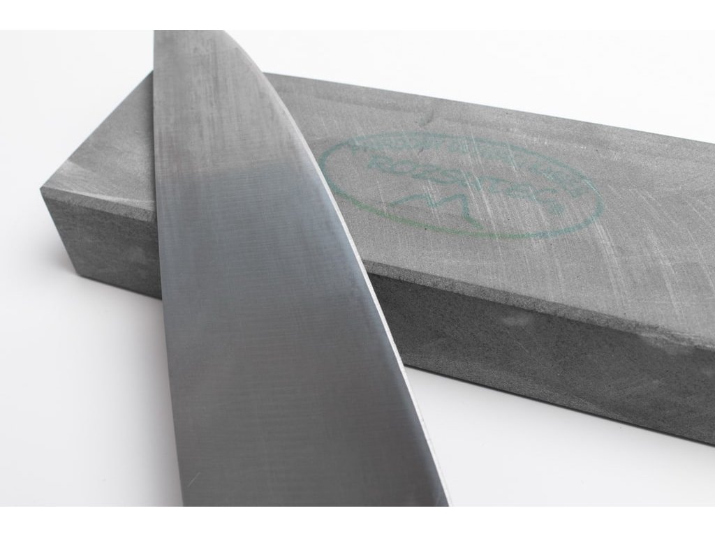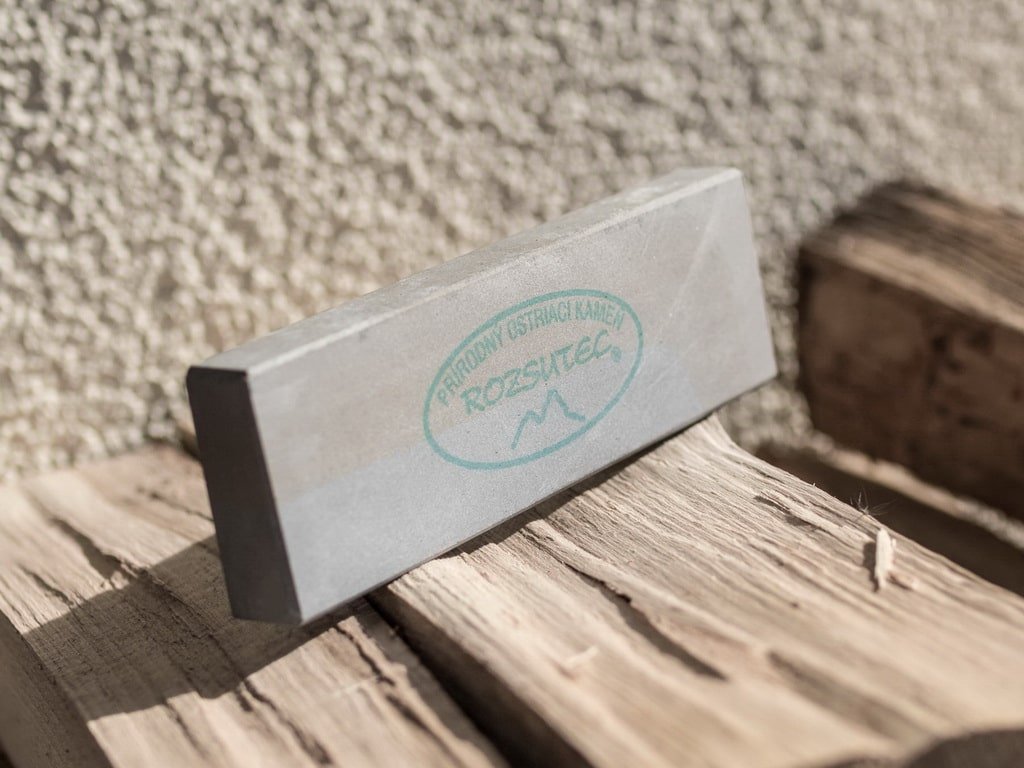 Piatră de ascuțit naturală Rozsutec din Mala Fatra. Din punct de vedere al compoziției, este o gresie sedimentară dură, formată din granule de nisip foarte fine și uniforme. Este ideală pentru ascuțirea fină finală și lustruirea tăișului. Dimensiunile pietrei sunt de 200x80x30 mm. Granulația pietrei este de aproximativ 6000 - 8000 și poate netezi tăișul până la un luciu ca de oglindă. Piatra de ascuțit Rozsutec este folosită pentru ascuțirea cu apă.