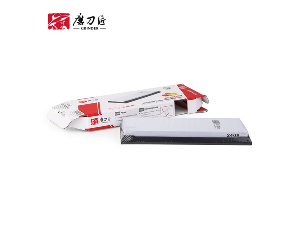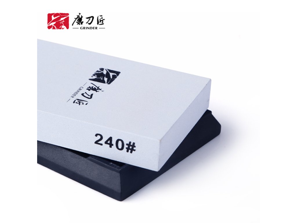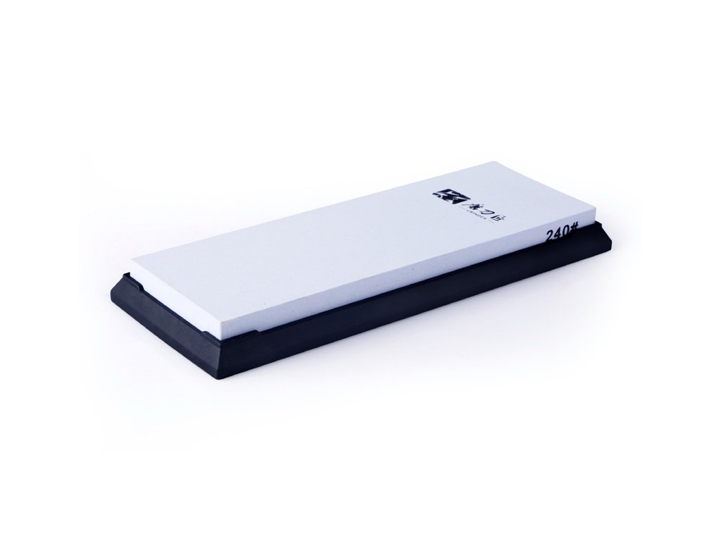 Piatră de ascuțit Taidea, granulație 240. Piatra este fabricată din corindon și înainte de utilizare este recomandat să se folosească apă pentru a umezi piatra. Aceasta este o piatră pentru ascuțirea grosieră, concepută pentru faza inițială de ascuțire a unui tăiș foarte tocit.