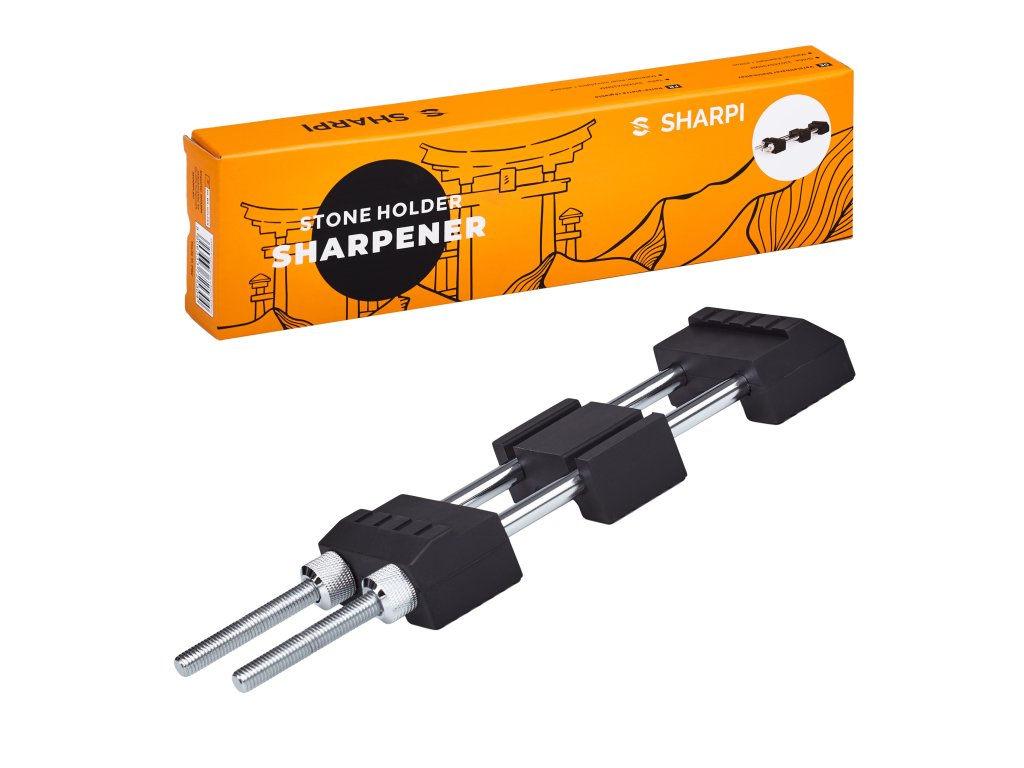 Suport pentru pietre de ascuțit anti-alunecare. Datorită componentelor sale din cauciuc, fixează foarte bine piatra și previne alunecarea acesteia în timpul ascuțirii cuțitelor. Suportul poate fixa pietre cu o lungime maximă de 19,5 cm, ungimea minimă a pietrei care poate fi fixată este de 9,1 cm.