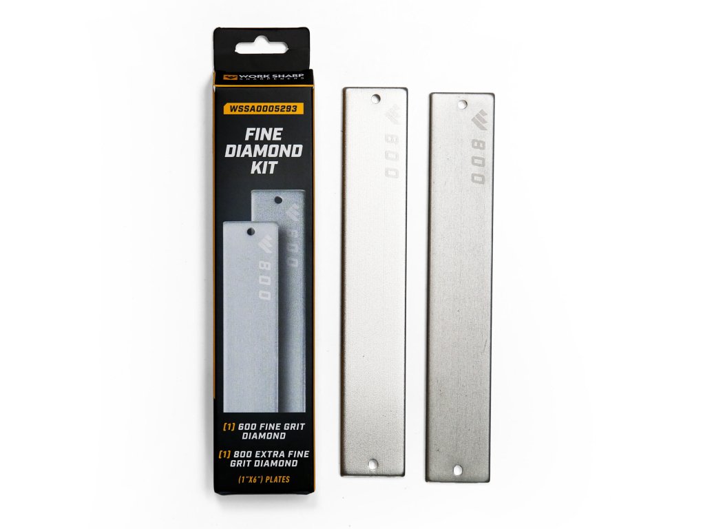 Pietre de schimb diamantate de ascuțit cuțite pentru aparatul de ascuțit Work Sharp Professional Precision Adjust. Pietrele au o granulație medier 600 și 800 și sunt potrivite pentru etapa inițială de ascuțire a cuțitelor tocite. Producătorul recomandă ascuțirea pe uscat, utilizarea uleiului sau a apei nu este recomandată.