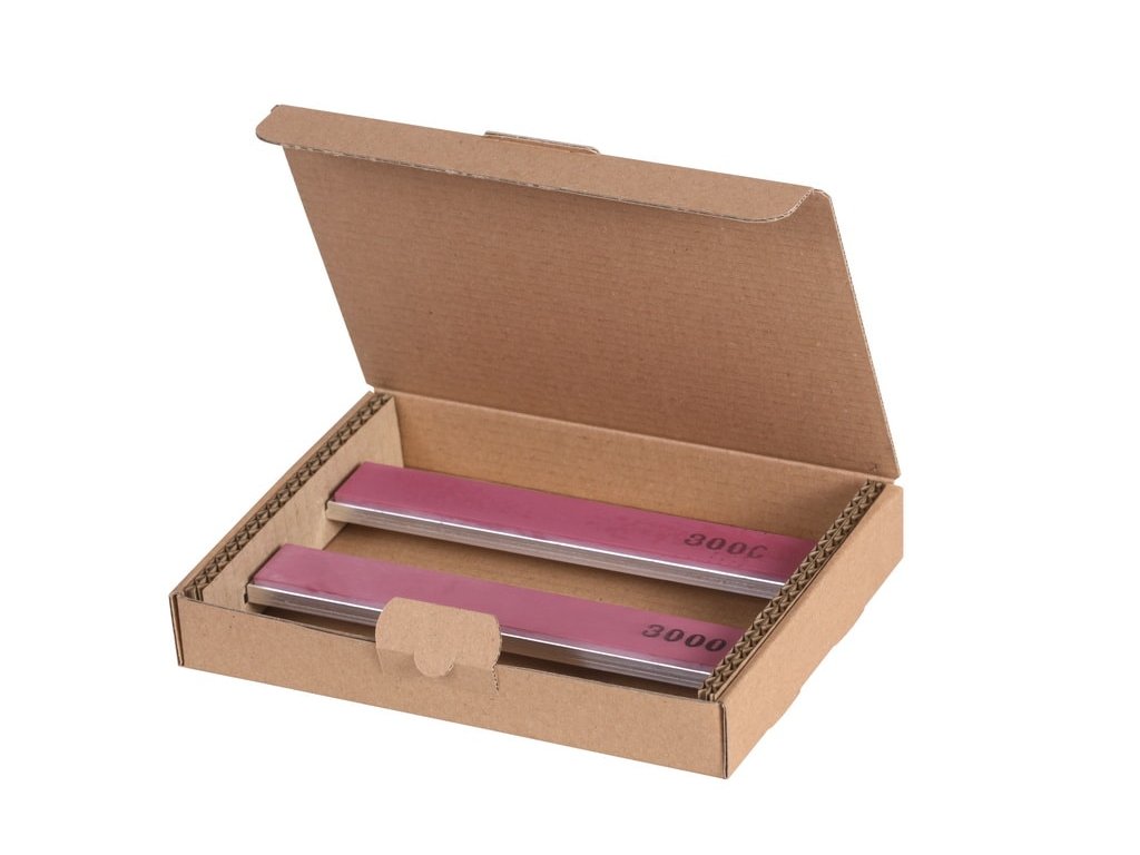 Set de 2 bucăți de pietre ceramice de ascuțit cuțite KMFS foarte fine pentru KMFS River. Pietrele au o granulație pietrei de 3000 și sunt potrivite a fi folosite dupî ascușirea cu cu o piatră de ascuțit diamantată (1000). Este necesar să umeziți pietrele cu apă în timpul ascuțirii.