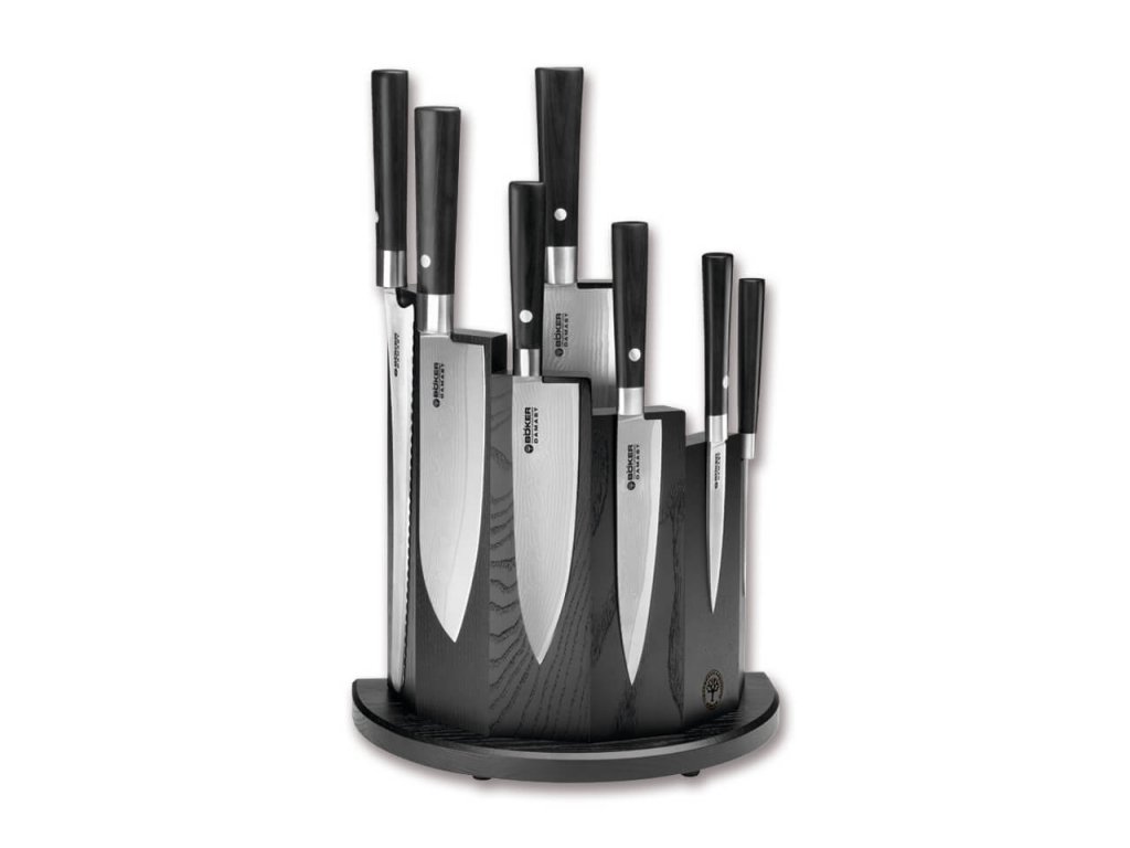 Setul de cuțite de bucătărie Böker Damascus Black este de mult timp un must-have pentru bucătari profesioniști, dar își poate găsi cu ușurință locul și în bucătăria dvs. Setul de cuțite pentru bucătărie conține toate cele 7 cuțite din ediția Damascus Black, iar blocul de depozitare din lemn masiv de frasin vă va ușura munca în bucătărie.