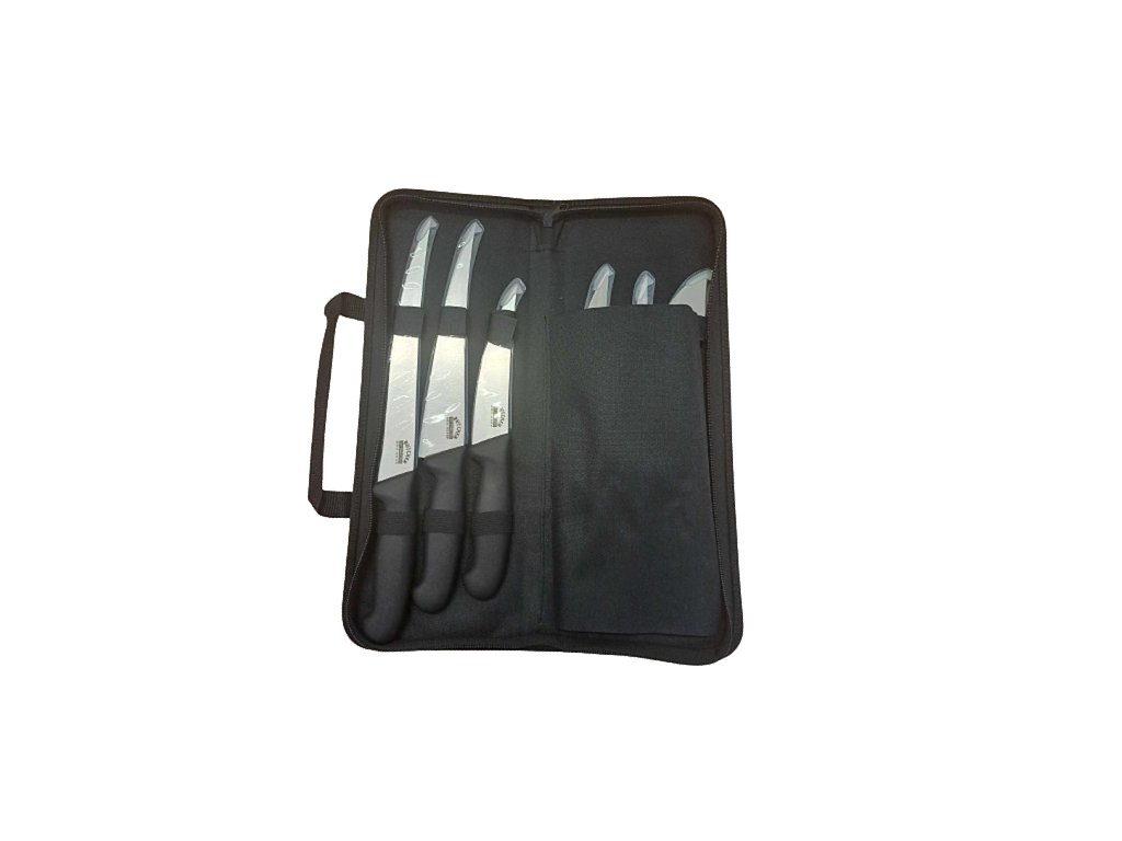 Set de cuțite din seria Butcher. Mâner din plastic TPE, lame din oțel inoxidabil AUS-8. Setul include o geantă, 6 cuțite de bucătărie.