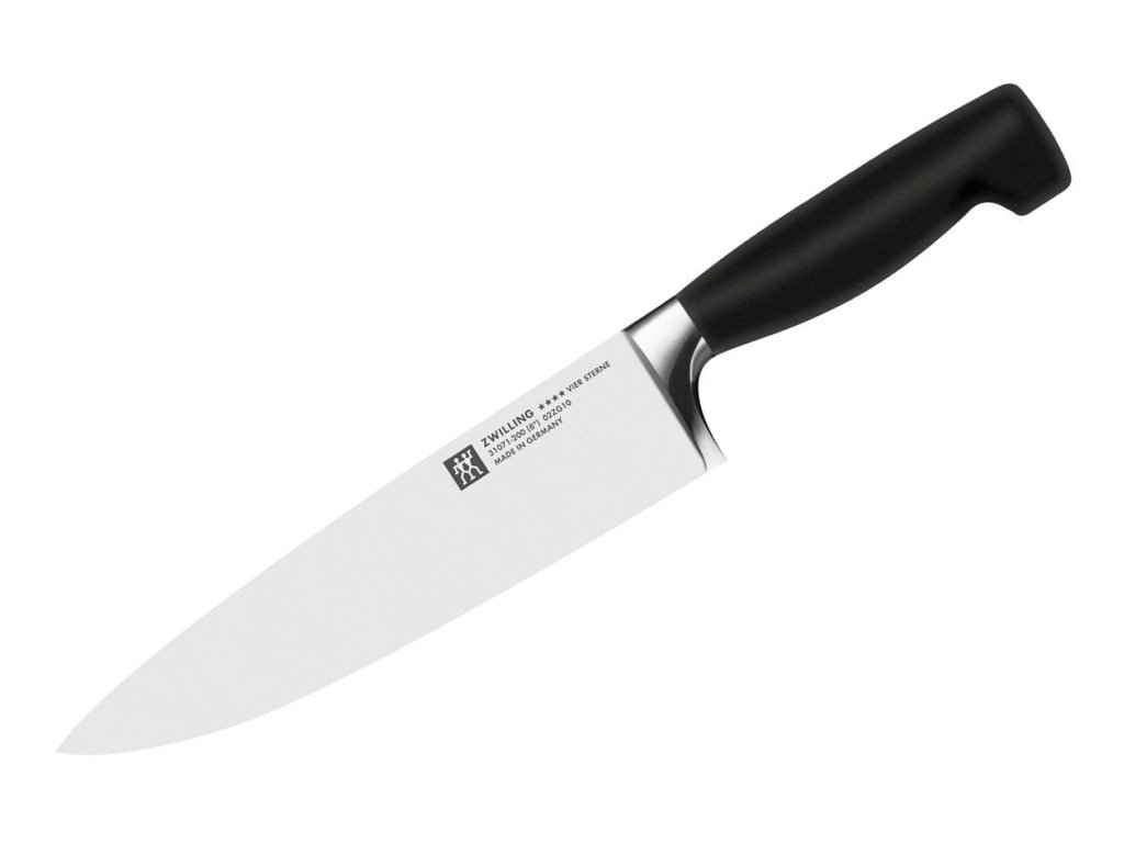 Cuțitele sunt fabricate din oțel special conform rețetei Zwilling, cu un raport optim de crom și carbon. Lamele Friodur®, călite prin înghețare și robuste, sunt rezistente la coroziune, echilibrate corespunzător și, datorită greutății lor reduse, nu veți obosi atunci când lucrați cu ele. Aceste cuțite sunt forjate folosind tehnica SIGMAFORGE® de la Zwilling, adică dintr-o singură bucată de oțel. Seria de cuțite de bucătărie Four Star are o construcție full tang și dispune de un mâner din plastic, ușor și ușor de spălat. V-Edge este un proces de ascuțire în 2 etape care are ca rezultat un tăiș simetric cu teșitură la un unghi de 15 grade.