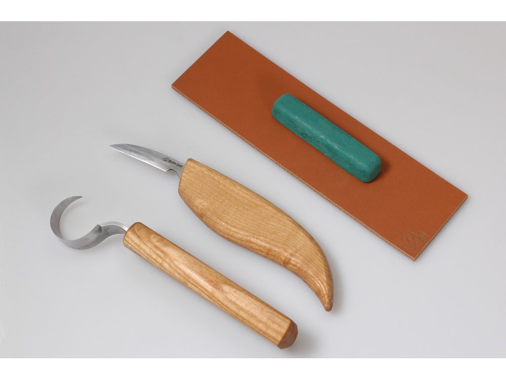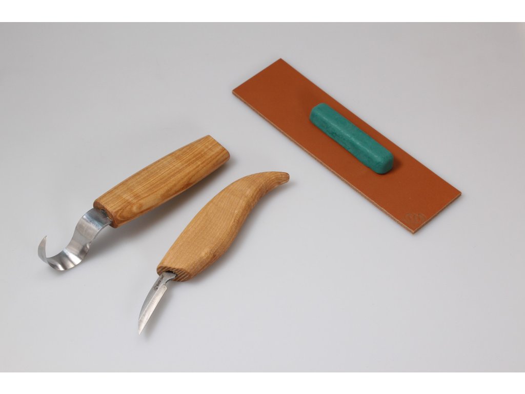 Set pentru sculptarea lingurilor în lemn BeaverCraft. Include un cuțit pentru sculptarea lingurilor și un cuțite pentru sculptura în lemn pentru lucrări fine. Cuțitele sunt foarte ascuțite, iar tăietura rezultată este foarte fină, fără fisuri în lemn. Lamele sunt fabricate din oțel carbon 65G, duritate 57-59 HRC. Oțelul carbon rezistă bine la uzură și este ușor de ascuțit, dar este mai predispus la rugină (cuțitul trebuie curățat și uscat bine după utilizare, de asemenea, este recomandabil să ungeți lama ocazional cu ulei). Mânerul este realizat din lemn de frasin, impregnat cu ulei de in.