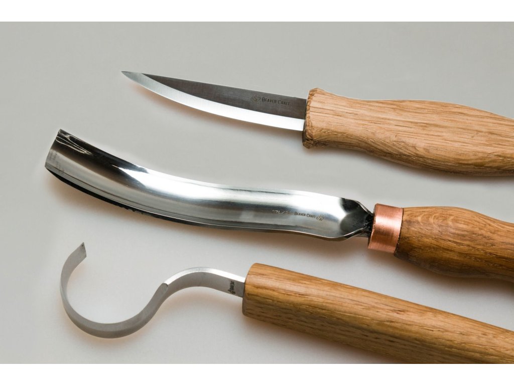 Kit pentru sculptarea lingurilor de la BeaverCraft, include și o daltă. Cuțitele sunt foarte ascuțite, iar tăietura rezultată este foarte fină, fără fisuri în lemn. Lamele sunt fabricate din oțel carbon 65G, duritate 57-59 HRC. Oțelul carbon rezistă bine la uzură și este ușor de ascuțit, dar este mai predispus la rugină (cuțitul trebuie curățat și uscat bine după utilizare, de asemenea, este recomandabil să ungeți lama ocazional cu ulei). Mânerul este realizat din lemn de frasin, impregnat cu ulei de in.