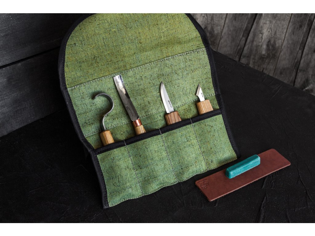 Setul include 4 unelte pentru sculptura în lemn, piele și pastă pentru ascuțit cuțite. Cu acest set puteți transforma orice idee în realitate. Cuțitele din acest set au un mâner ergonomic. Mânerele sunt proiectate și modelate astfel încât mâinile să nu vă doară chiar și după ore îndelungate de utilizare. Depozitați uneltele pentru sculptură în lemn în husa care vine cu setul.