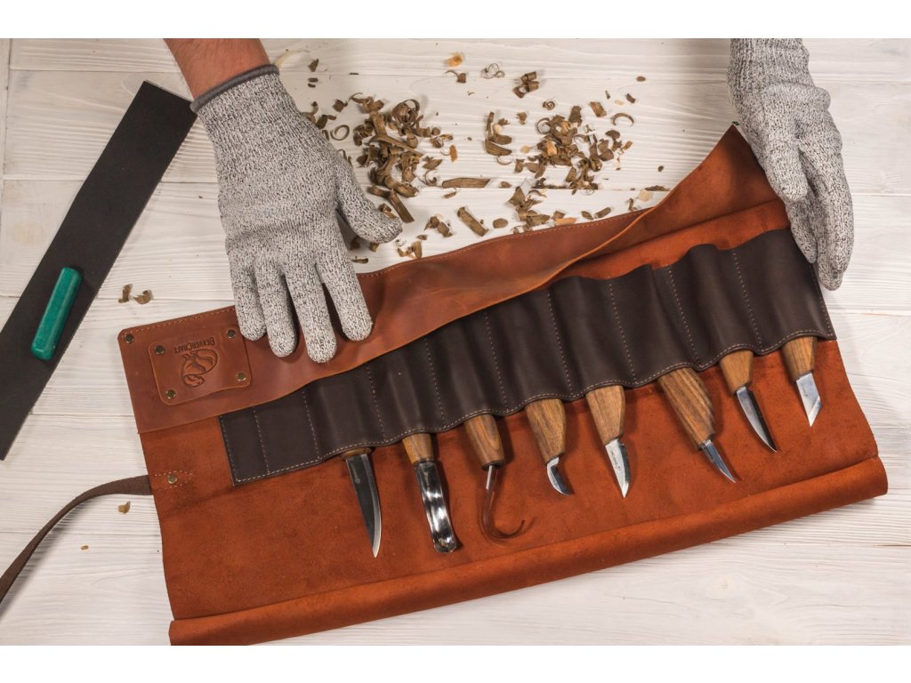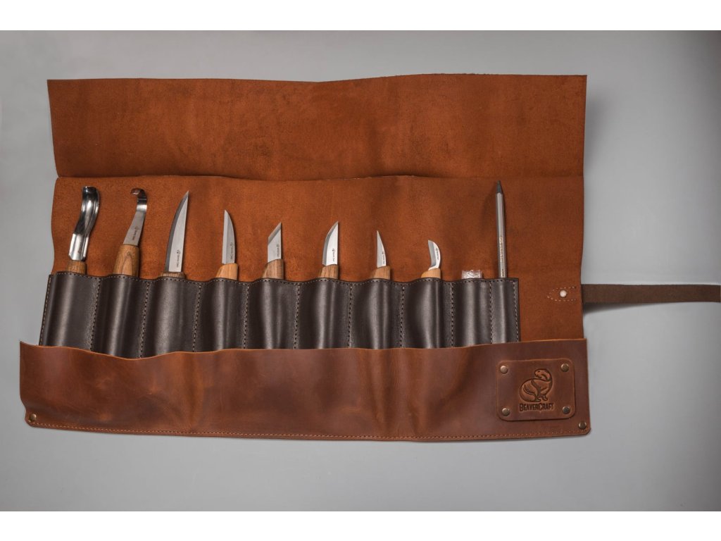 Set de cuțite pentru sculptura în lemn BeaverCraft S18X în husă din piele