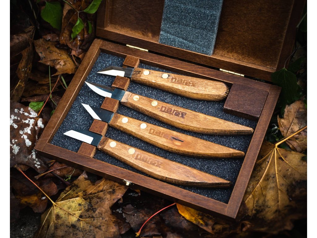 Set de cuțite pentru sculptura în lemn Narex PROFI 4 în cutie de lemn