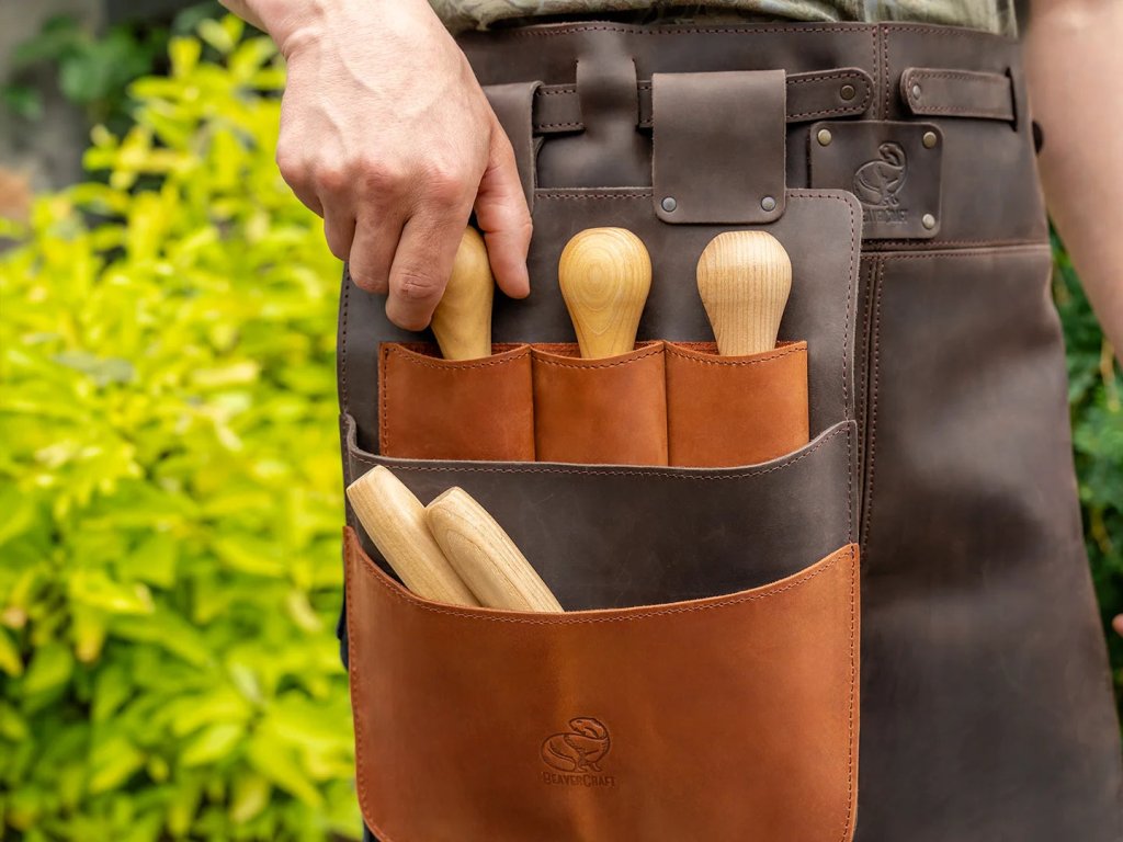 Șorț din piele BeaverCraft LС_Set_01 maro cu suport pentru unelte