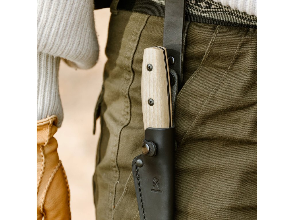 Agățătoarea este compatibilă cu cuțitele Morakniv Finn, Morakniv Wit, Morakniv Lok și alte câteva modele produse de Morakniv.