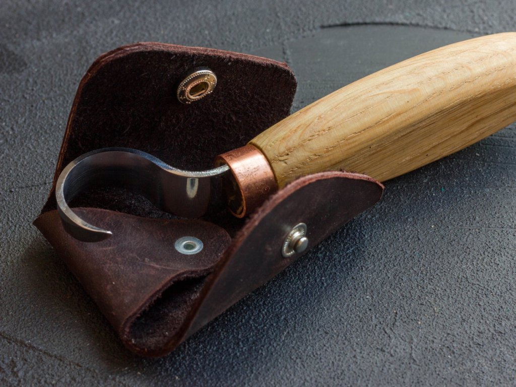 Teacă din piele pentru cuțite folosite la sculptarea lingurilor BeaverCraft SK1Oak și SK5