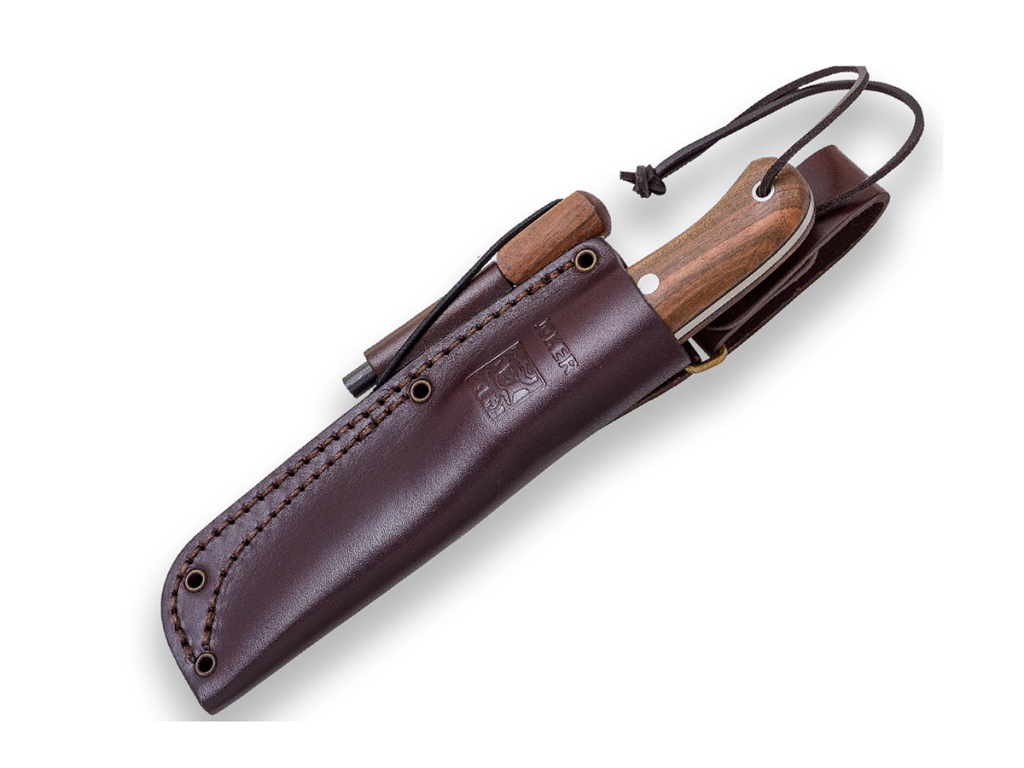 Teacă din piele pentru cuțitul Joker Joker BS9 Campero, cu suport pentru instrumentul pentru generarea scânteilor. Teacă permite fixarea la curea. Cuțitul și instrumentul pentru generarea scânteilor nu sunt incluse în pachet.
