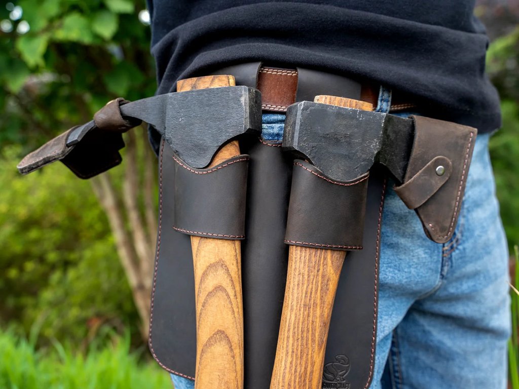 Suport de curea pentru agățarea topoarelor și teslelor BeaverCraft AX1 și AX2. Potrivit și pentru alte unelte. Material piele, de grosime 3 mm. Dimensiuni 18,5 x 25 cm.