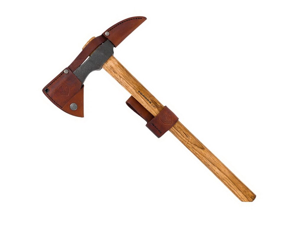 Toporul Condor Indian Spike Tomahawk este fabricat din oțel carbon 1060 cu o duritate 50-55 HRC. Capul de topor este forjat manual, ceea ce conferă toporului un finisaj foarte frumos și un aspect clasic. Mânerul fabricat din lemn de nuc american carbonizat este foarte rezistent și, combinat cu designul viking, conferă toporului un aspect antic. Teaca - apărătoarea lamei este fabricată din piele maro de bună calitate, lucrată manual.