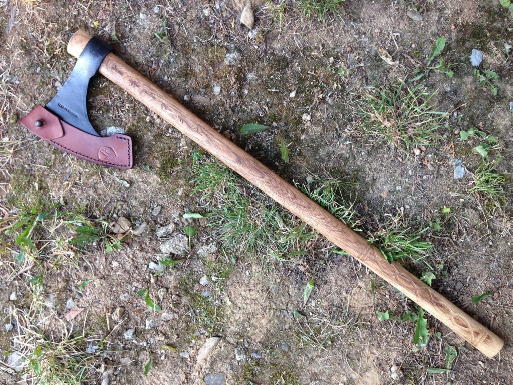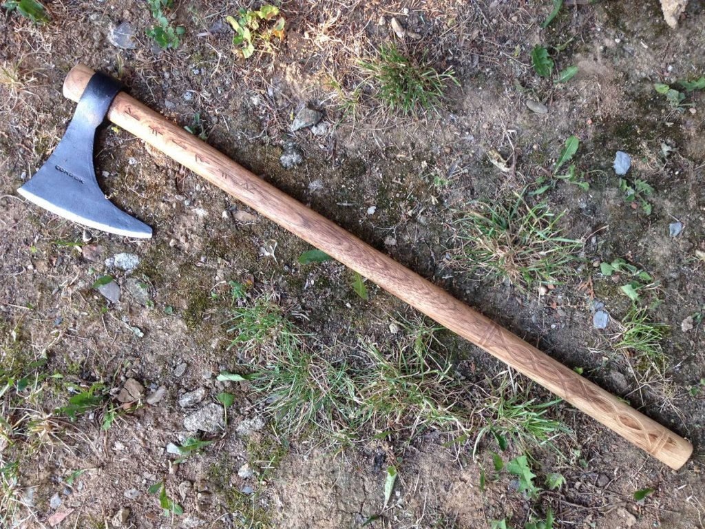 Toporul Condor Valhalla Battle Axe este fabricat din oțel carbon 1060 cu duritate 50-55 HRC. Capul de topor este forjat manual, ceea ce conferă toporului un finisaj foarte frumos și un aspect clasic. Mânerul fabricat din lemn de nuc american carbonizat este foarte rezistent și, combinat cu designul viking, conferă toporului un aspect antic. Teaca - apărătoarea lamei este fabricată din piele maro de bună calitate, lucrată manual.
