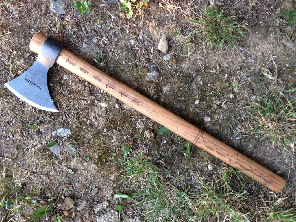 Toporul de aruncat Condor Valhalla Throwing Axe este fabricat din oțel carbon 1060 cu duritate 50-55 HRC. Capul de topor este forjat manual, ceea ce conferă toporului un finisaj foarte frumos și un aspect clasic. Mânerul fabricat din lemn de nuc american carbonizat este foarte rezistent și, combinat cu designul viking, conferă toporului un aspect antic. Teaca - apărătoarea lamei este fabricată din piele maro de bună calitate, lucrată manual.