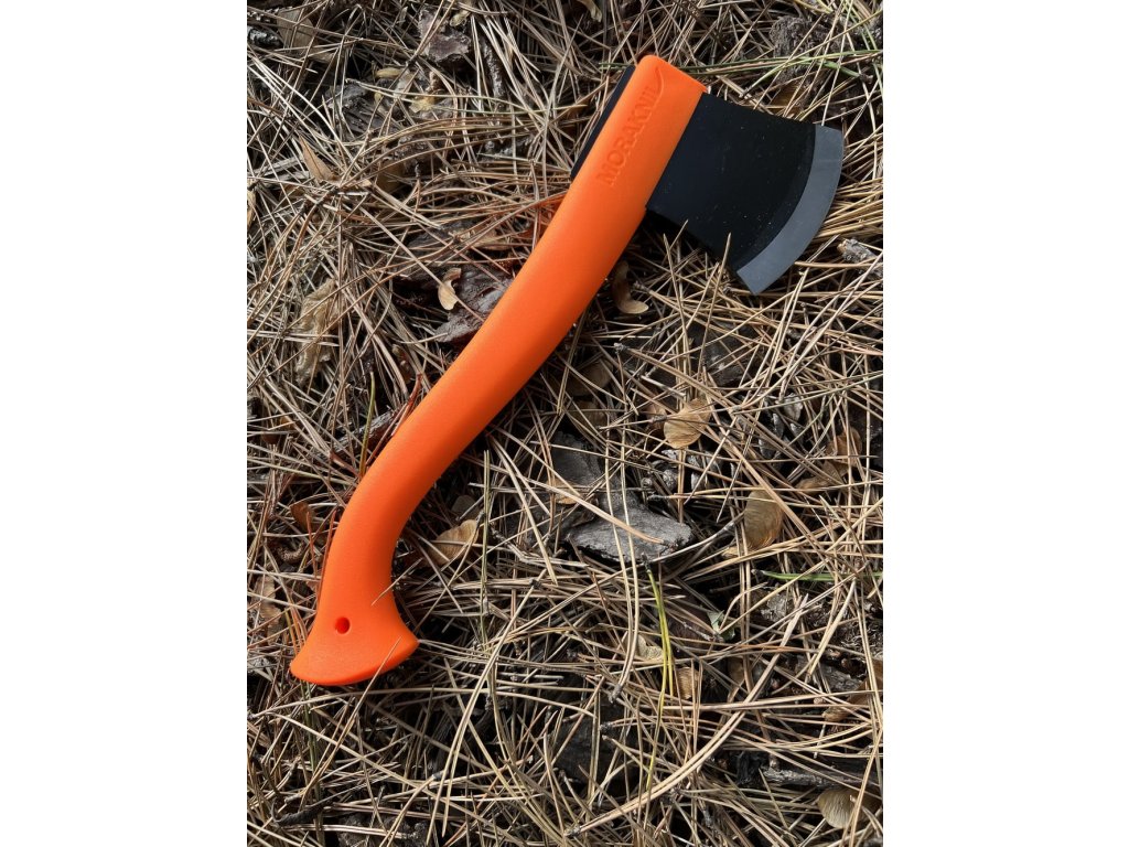 Topor suedez Mora Lightweight Axe de calitate, cu cap de topor din oțel bor laminat la rece. Mânerul robust din plastic oferă o prindere fermă și sigură. Datorită culorii portocalii, toporul este foarte vizibil. Toporul este livrat și cu un apărător de lamă din piele suedeză. Lungime 32 cm, greutate 0,5 kg.