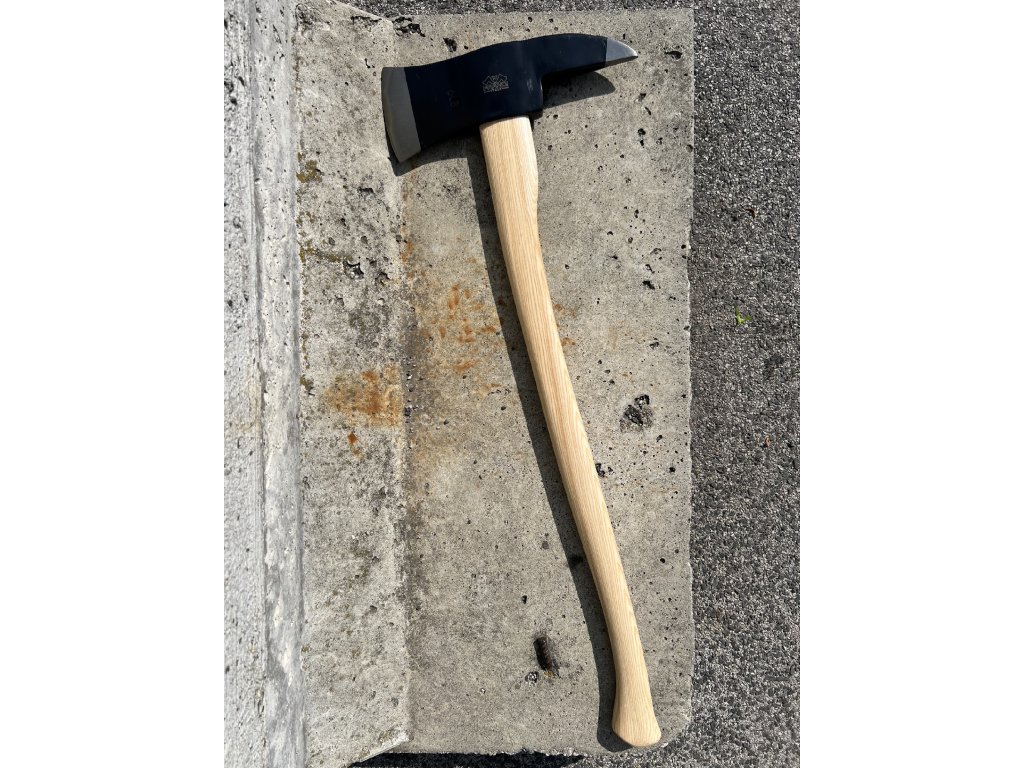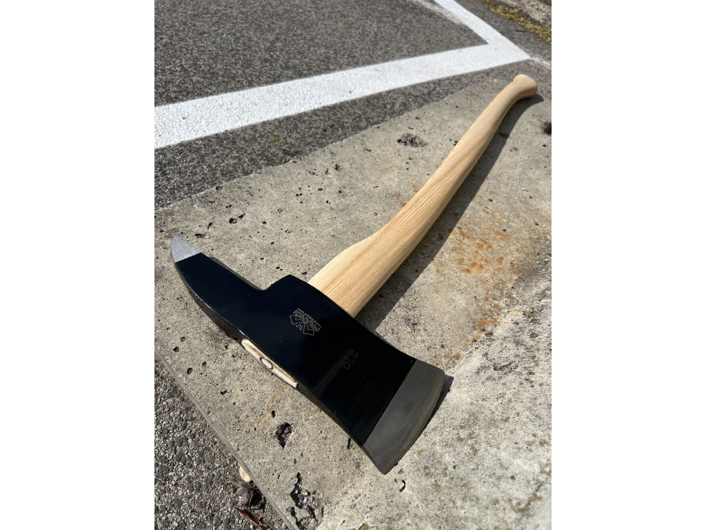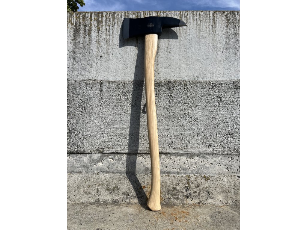 Topor de demolare pentru pompieri forjat. Greutatea capului 2800 g, lungimea totală 90 cm. Fabricat din oțel carbon C45. Mâner din lemn de frasin.