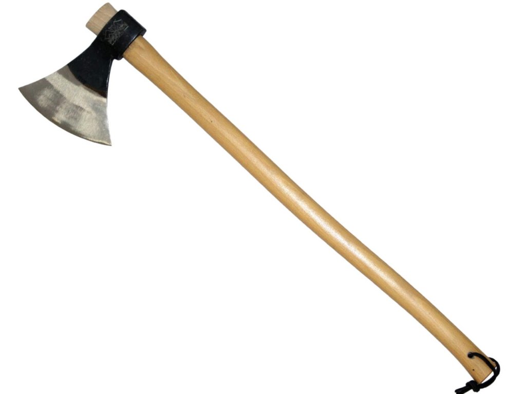 Topor cu cap subțire și lamă lată, din oțel carbon C45. Lungime totală 90 cm, greutate cap 1500 g.