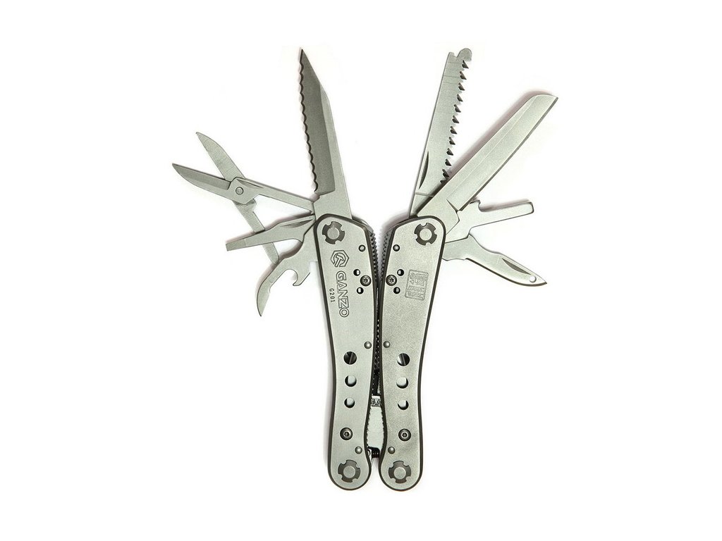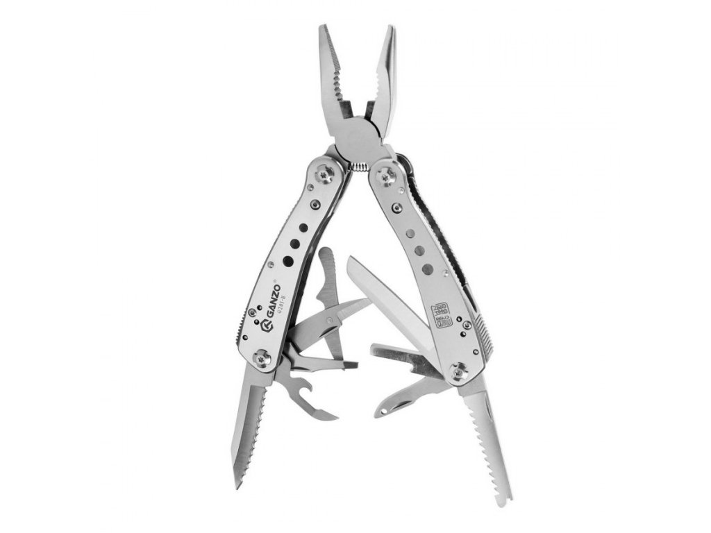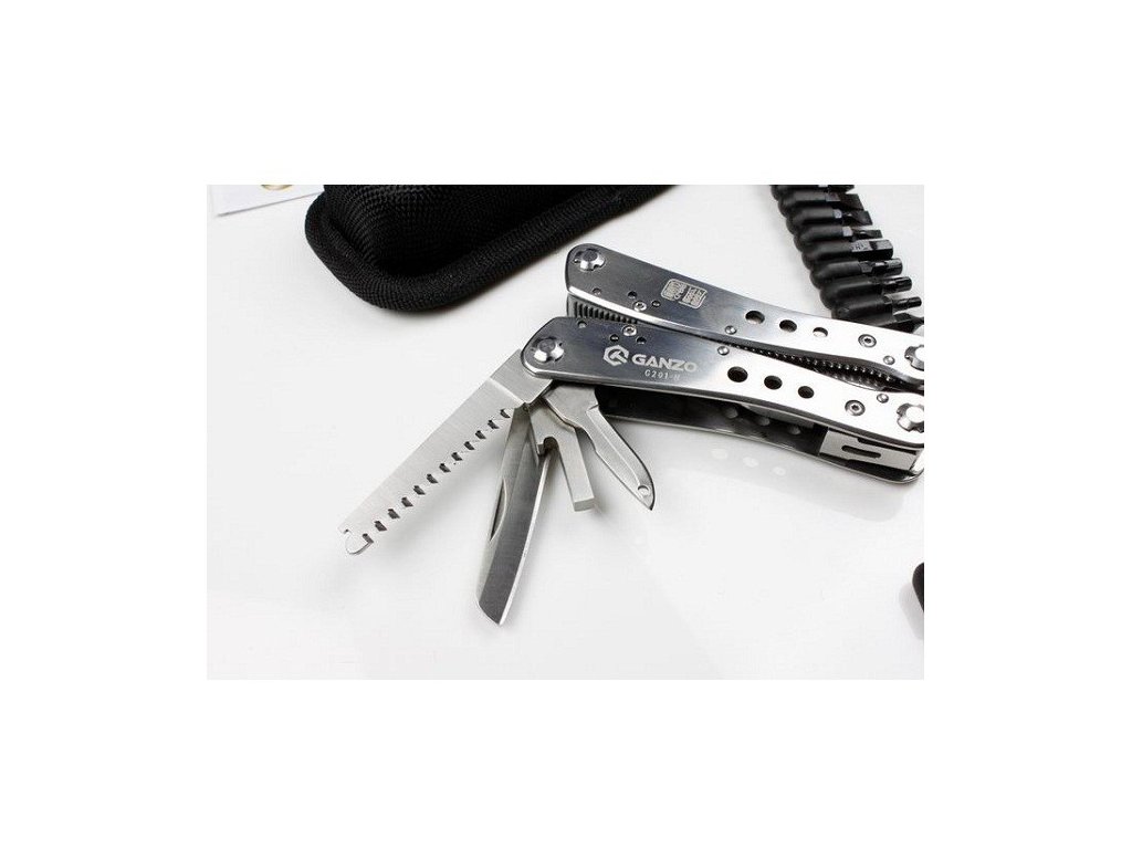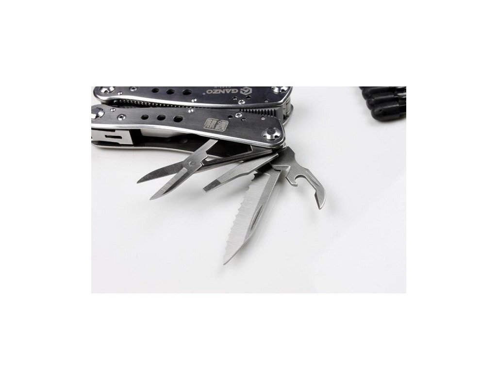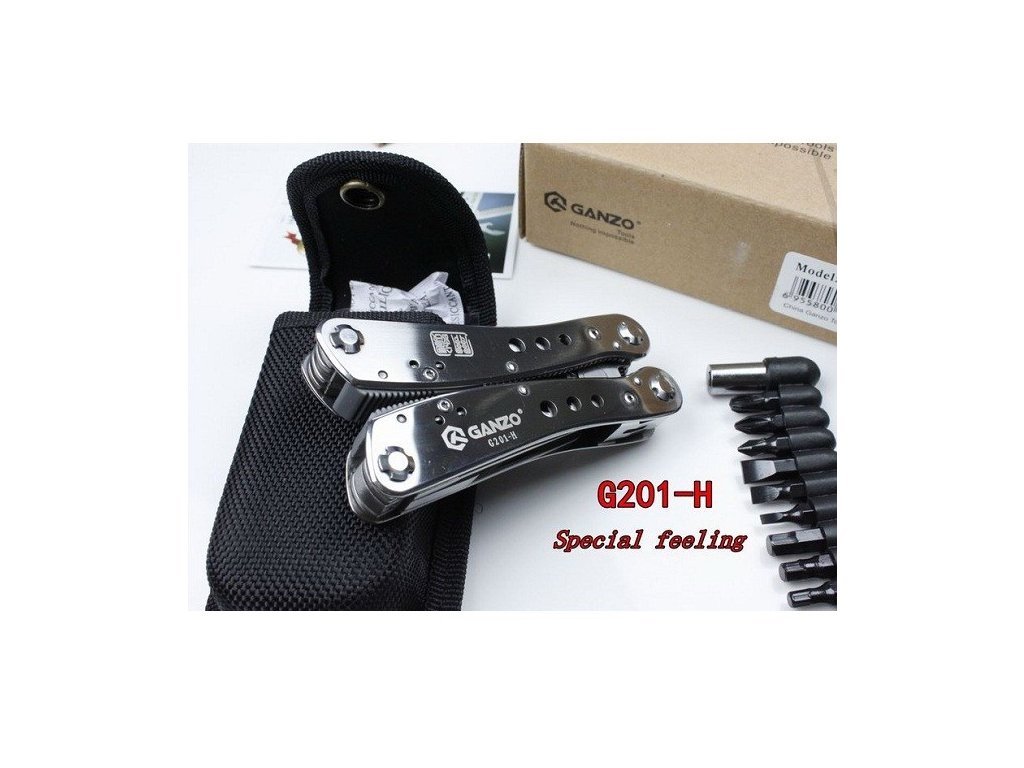 Multi-Tool Ganzo G201 cu 25 funcții. Este un instrument compact, confortabil și fiabil, capabil să înlocuiască o gamă largă de unelte. Include o teacă practică. Este fabricat din oțel de bună calitate 440C.