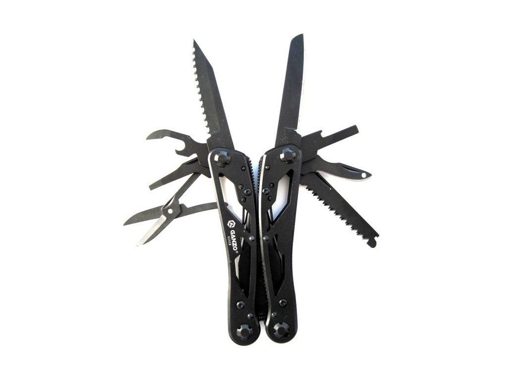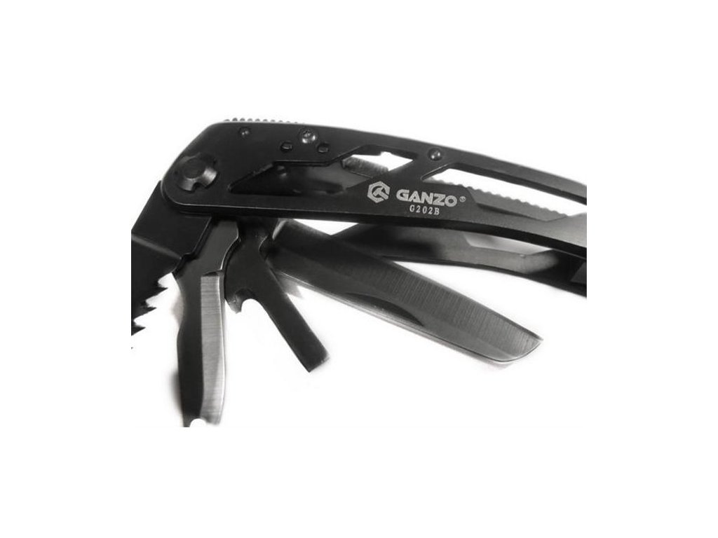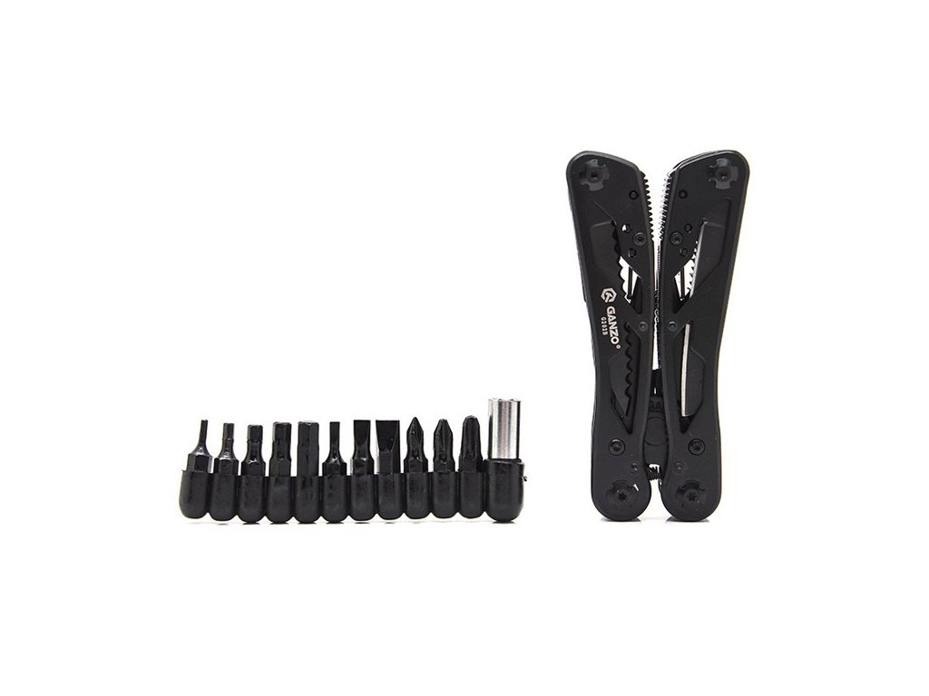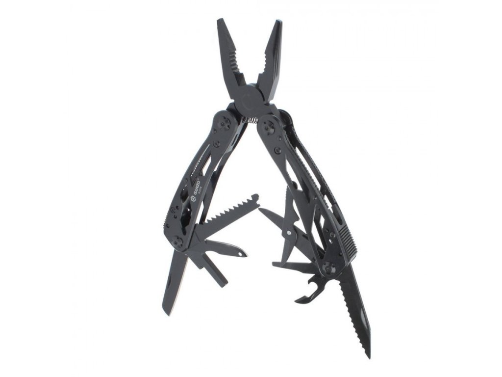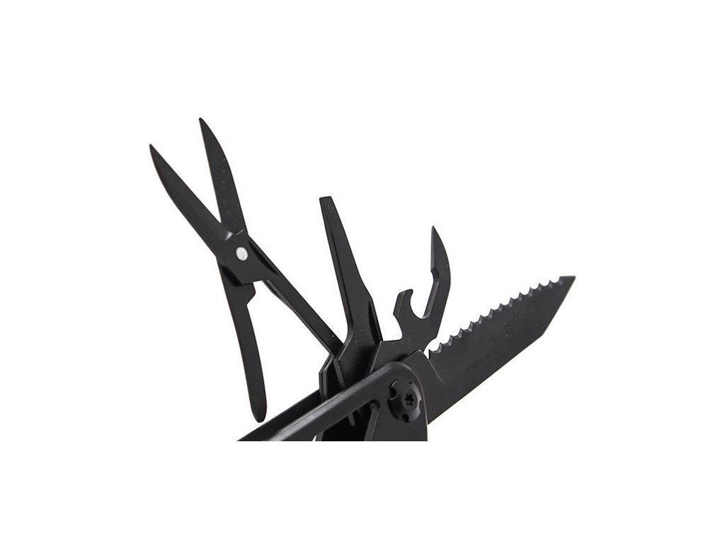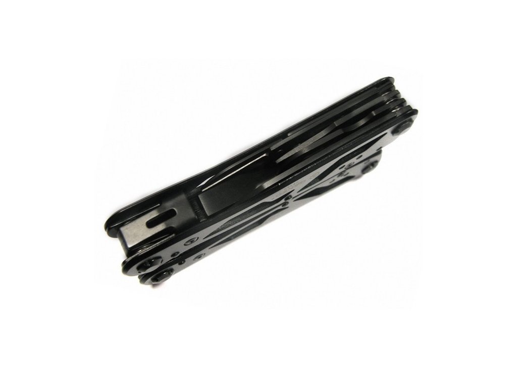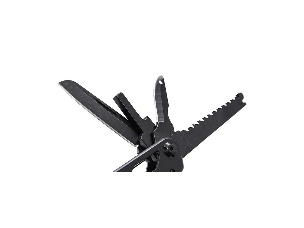 Multitool cu 25 de funcții. Fabricat din oțel inoxidabil 440C. Mâner din metal negru.