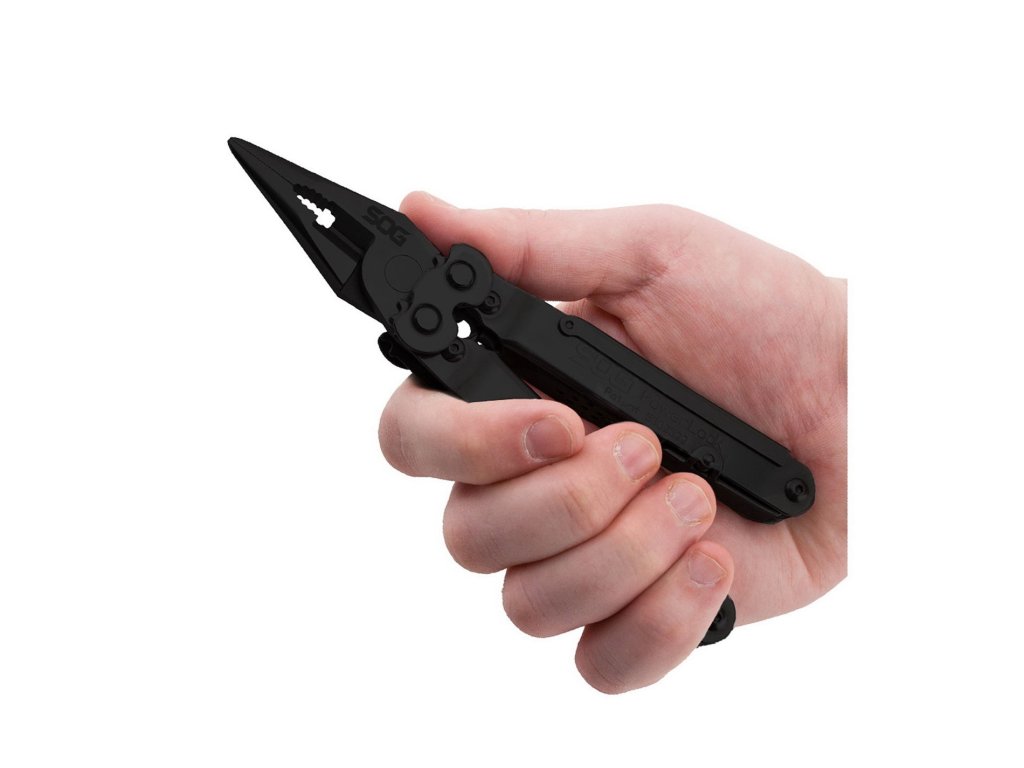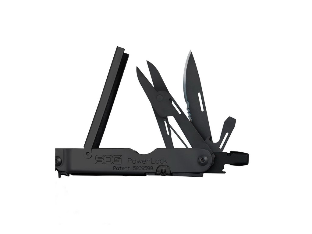 PowerLock Black este un instrument multifuncțional util. Modelul este echipat cu 18 unelte și un suport magnetic pentru capete hexagonale. Include tehnologia Compound Leverage de la SOG, care asigură o deschidere și închidere lină, precum și o prindere îmbunătățită a uneltei. Cu o lungime de doar 17,8 cm și o greutate redusă de 272 g, PowerLock este un instrument multifuncțional versatil, ideal pentru a fi pus în buzunar, rucsac, cutia cu unelte sau în casă. Este livrat cu o teacă din nailon.