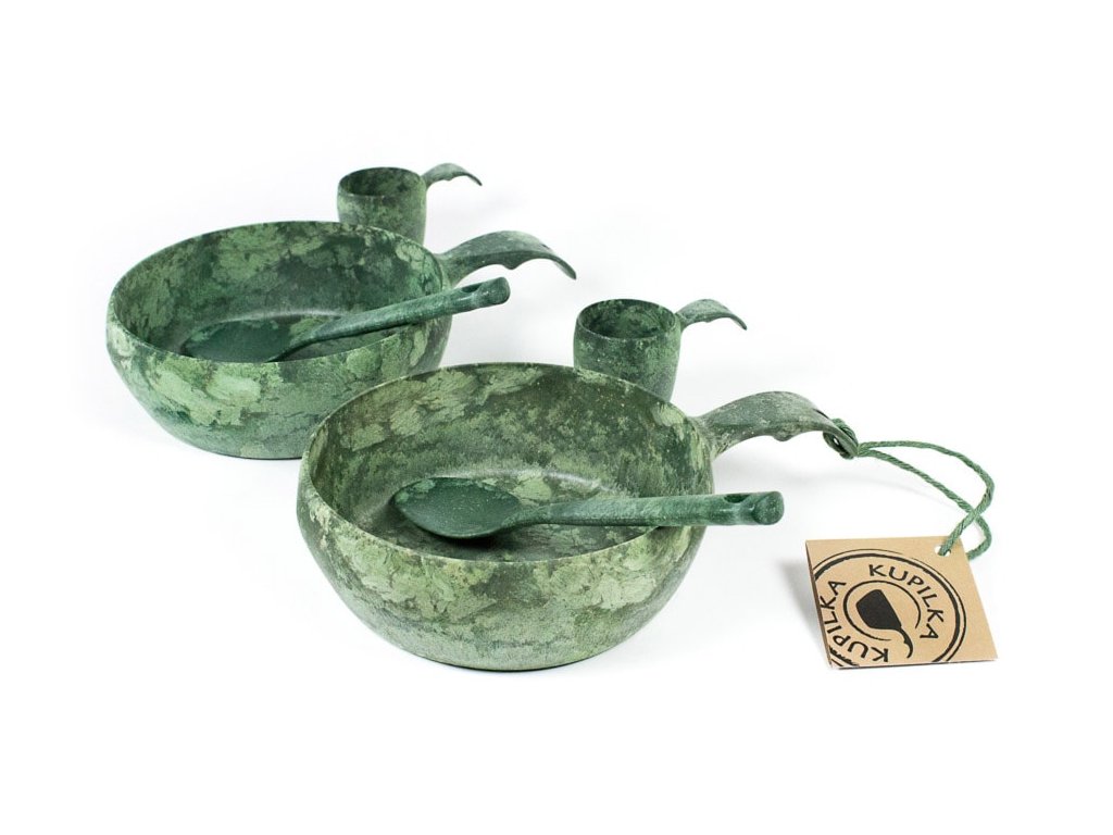 Set cadou pentru două persoane ce include un castron Kupilka 55, o ceașcă Kupilka 5 și o lingură. Fabricat din material Kareline® de culoare verde. Acest material este unic prin combinarea fibrelor de lemn de pin și a termoplasticului într-un raport de 50:50. Acesta combină avantajele lemnului și ale plasticului. Este incasabil, tolerează temperaturi de la -30°C până la +110°C, este rezistent și ușor; nu absoarbe mirosurile alimentelor, este ușor de curățat și nu este sensibil la umezeală, precum vesela tradițională din lemn.