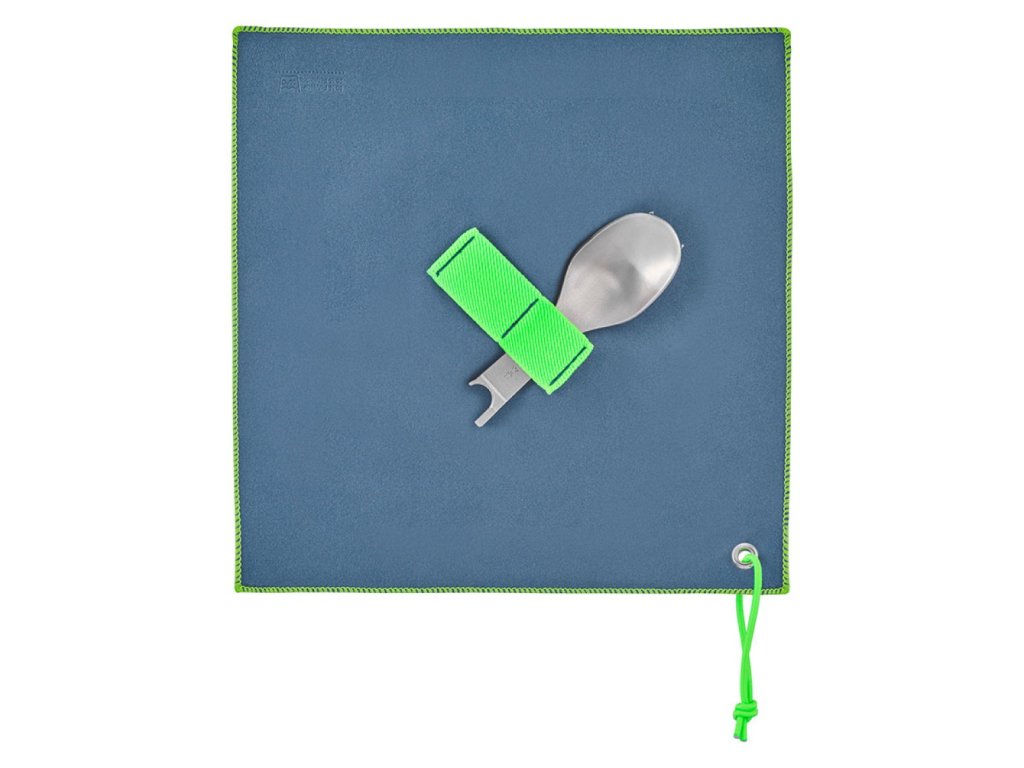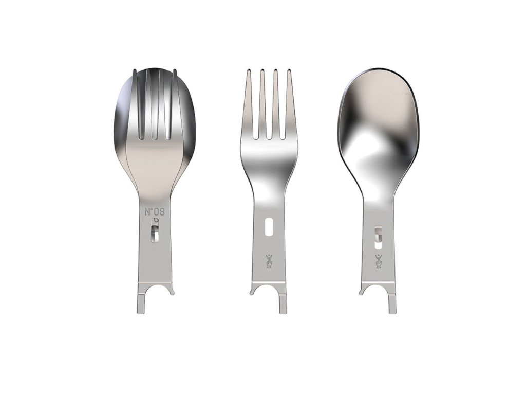 Set de tacâmuri din oțel inoxidabil fără mâner. Setul include lingură, furculiță și lavetă.